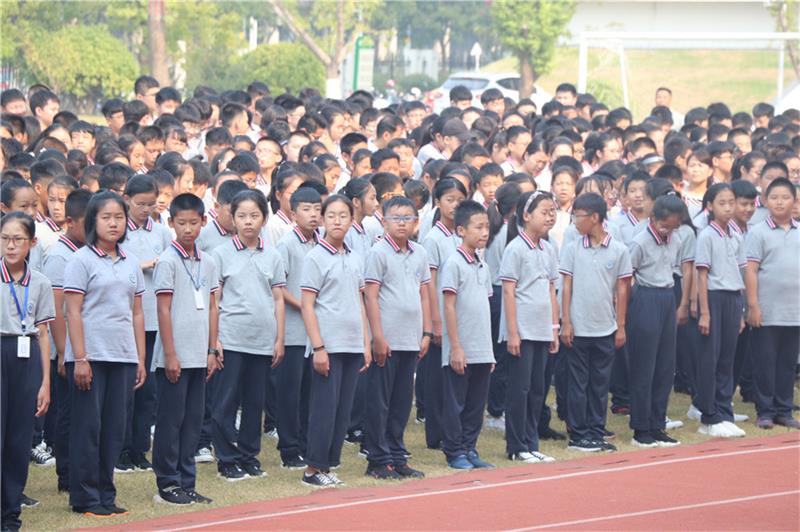 树恩附小的全体师生与初中部和高中部大哥哥、大姐姐们一起参加了新学期的第一次升旗仪式。